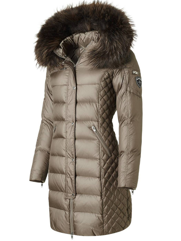 Opinie o ROCKANDBLUE BEAM MUD 90 cm - Damski puchowy płaszcz z kapturem o bardzo wąskim kroju