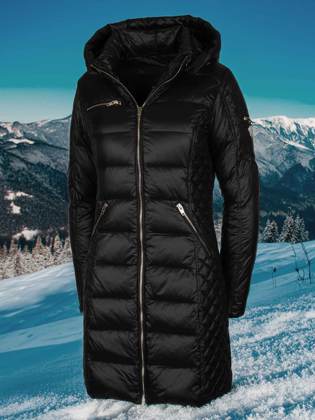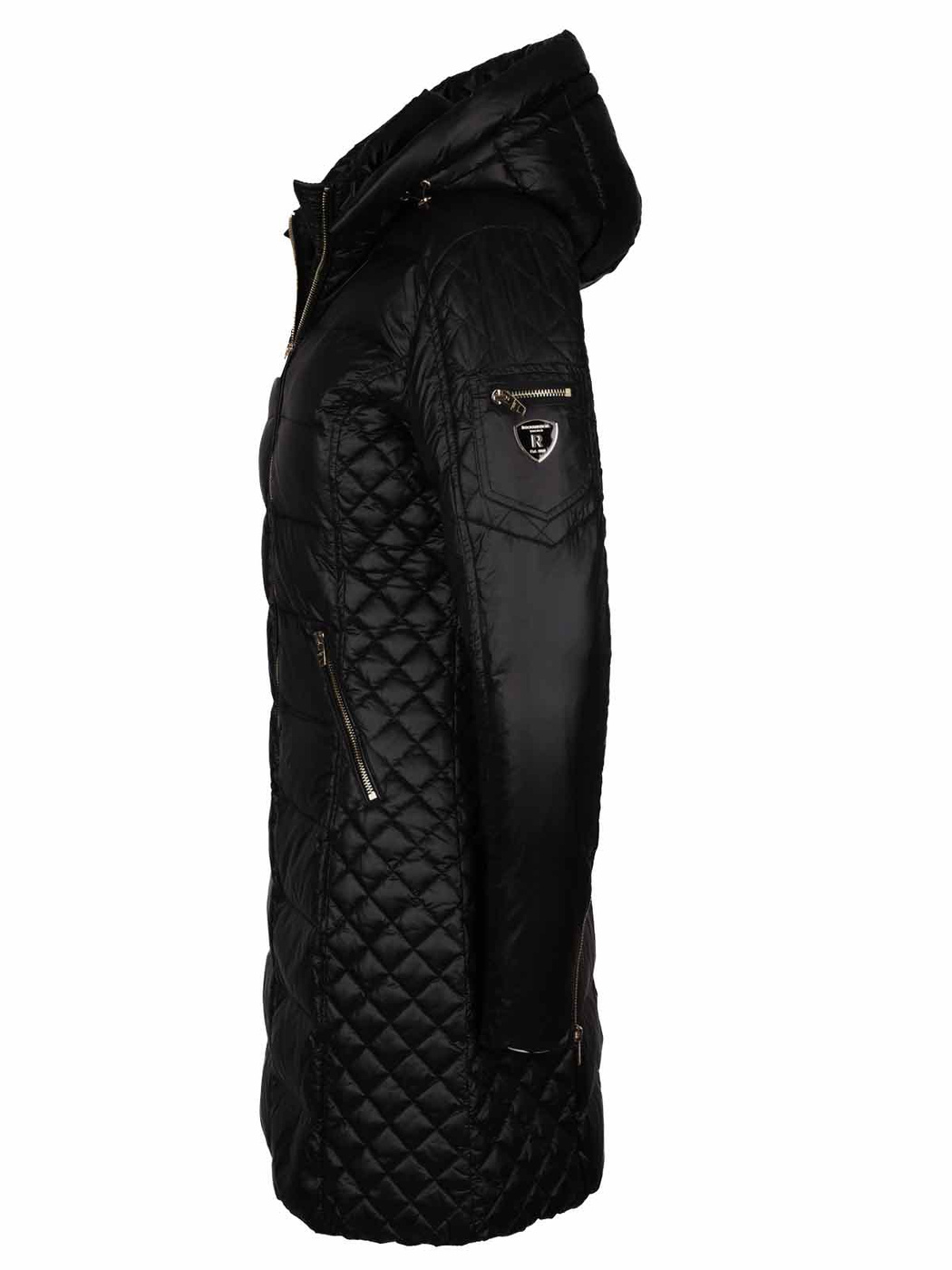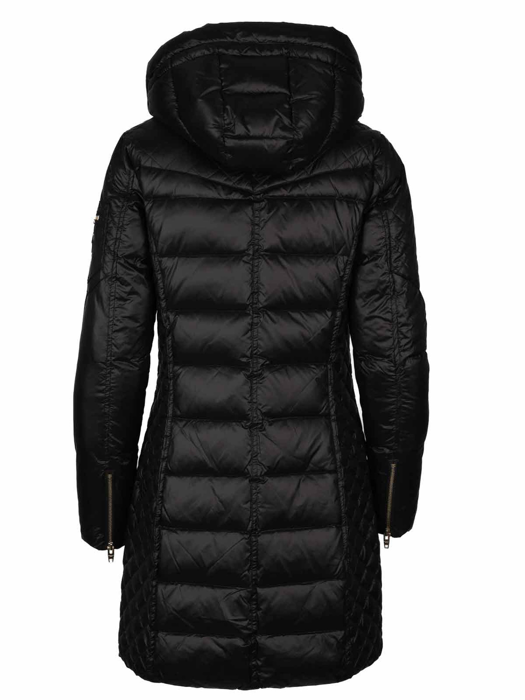 ROCKANDBLUE CIARA BARE 90 cm - Czarny puchowy płaszcz o bardzo wąskim kroju z kapturem bez obszycia